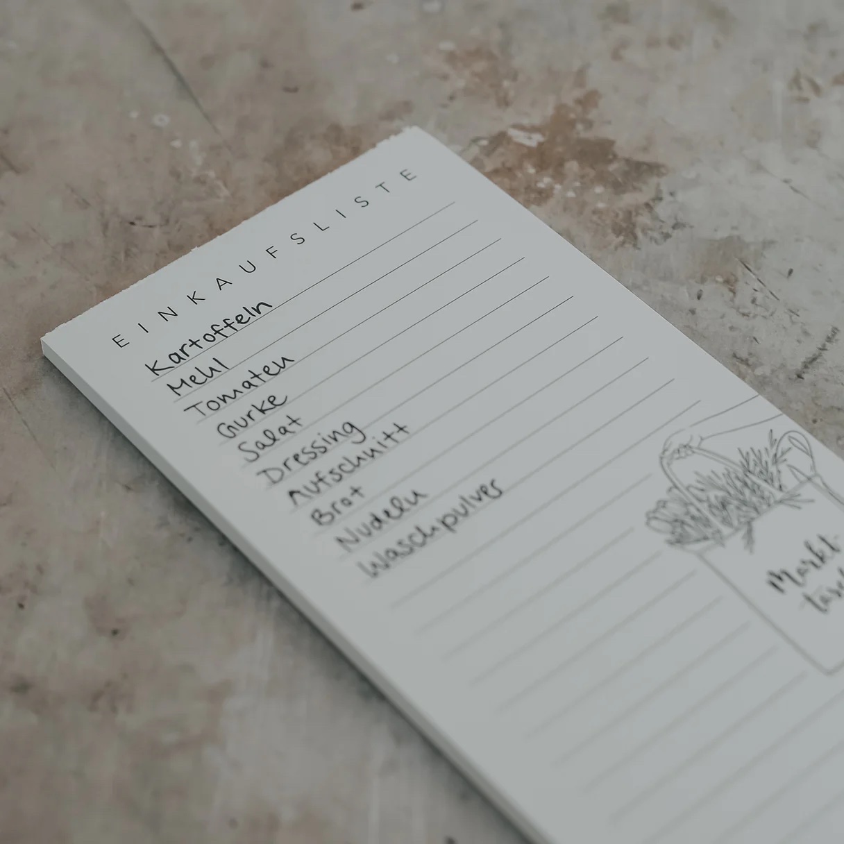 Die Einkaufsliste ist der perfekte Begleiter für deinen Einkauf. Mit dem handlichen Format von 9,8 x 21 cm passt der Block perfekt in die Tasche und ist immer griffbereit.