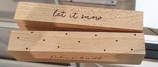 Das 2er Set besteht aus zwei unterschiedlichen Designs. Den ersten Kartenständer ziert der handgeschrieben Spruch “let it snow” und der zweite ist “verziert mit Punkten”. Auf der Unterseite befindet sich jeweils ein kleines Eulenschnitt Logo. Ein schnelles Austauschen nach Lust und Laune ist somit problemlos möglich. Das Format eignet sich perfekt für Deine liebsten Fotos, Postkarten und Bilder. Unsere Kartenständer sind zudem ein super Geschenk, denn wer freut sich nicht über ein tolles Foto? Auch auf Hochzeiten und besonderen Anlässen können mit diesen Halterungen die Tischnummern dekorativ platziert werden und zu einem absoluten Hingucker werden.