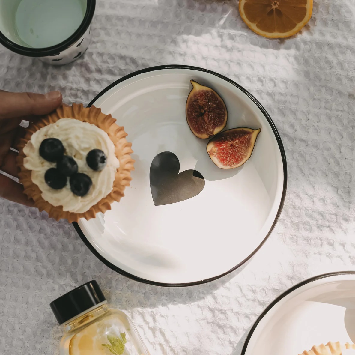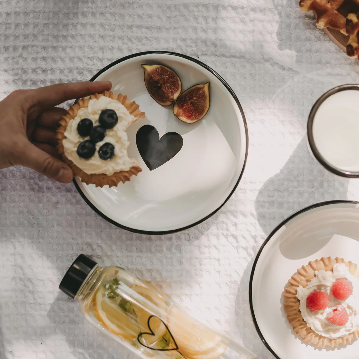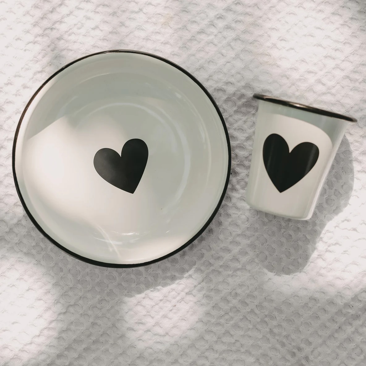 Ob beim Camping, Picknick oder auf Reisen im Van – dieser stilvolle Teller ergänzt dein Geschirr perfekt. Mit einem Durchmesser von ca. 18,7 cm passt er wunderbar auf jeden Tisch und in jeden Schrank. Das schlichte Design mit einem großen schwarzen Herz macht ihn zudem zu einem echten Hingucker.