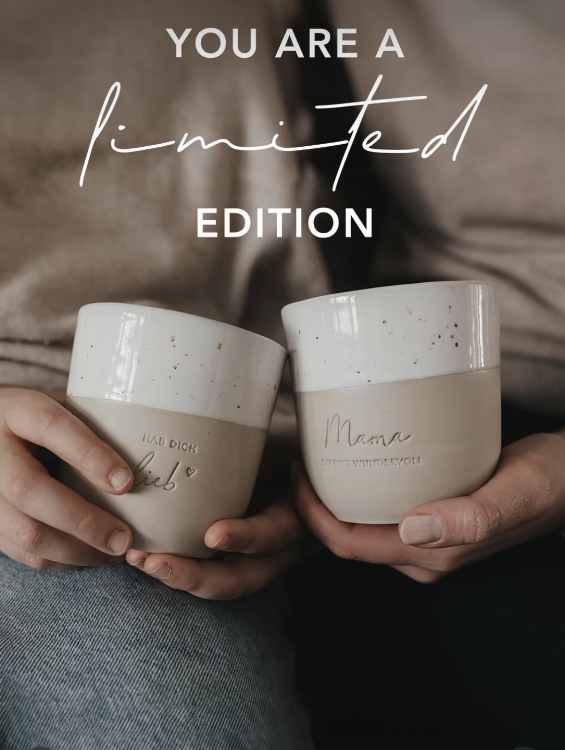 Ob als täglicher Begleiter für Kaffee oder Tee, als kleine Vase für Blumen oder als besondere Geschenkidee mit Lieblingssüßigkeiten – dieser Becher bringt Freude in den Alltag.