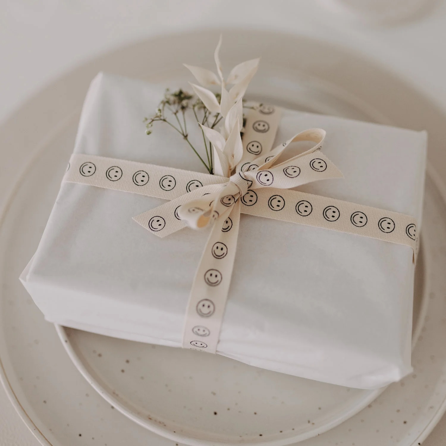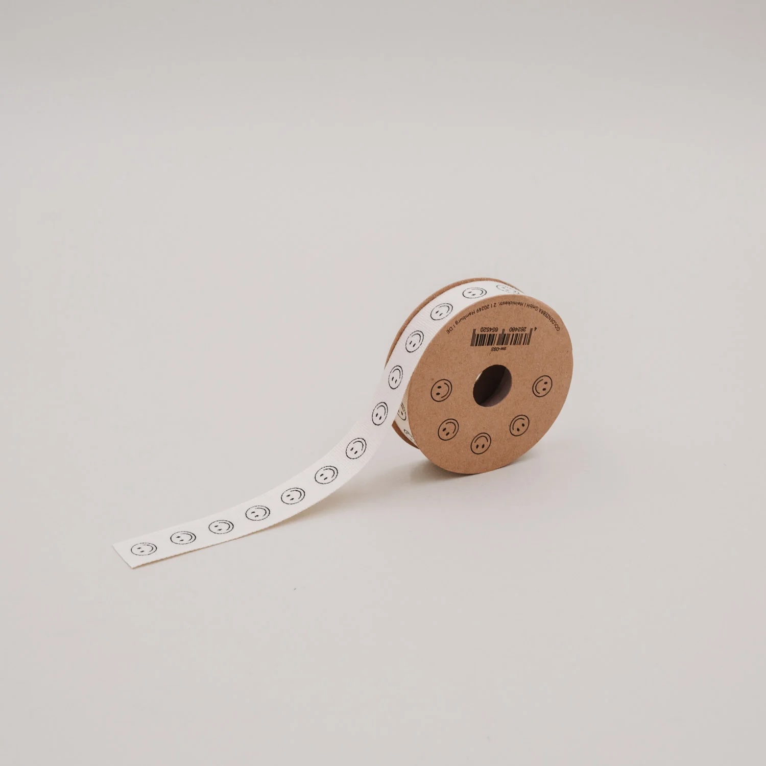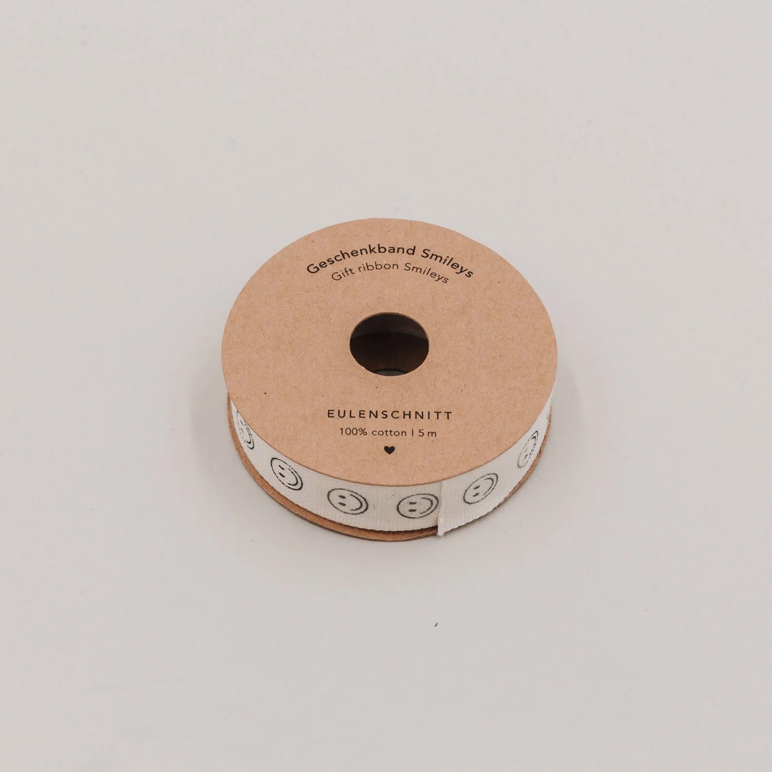 Das 5 Meter lange Band aus weicher Baumwolle besticht durch seine natürlichen Töne und die dezent aufgedruckten Smileys in Schwarz. Ob für die Geburt, kleine Überraschungen oder einfach so: Dieses Band bringt Leichtigkeit und gute Laune auf jedes Päckchen.