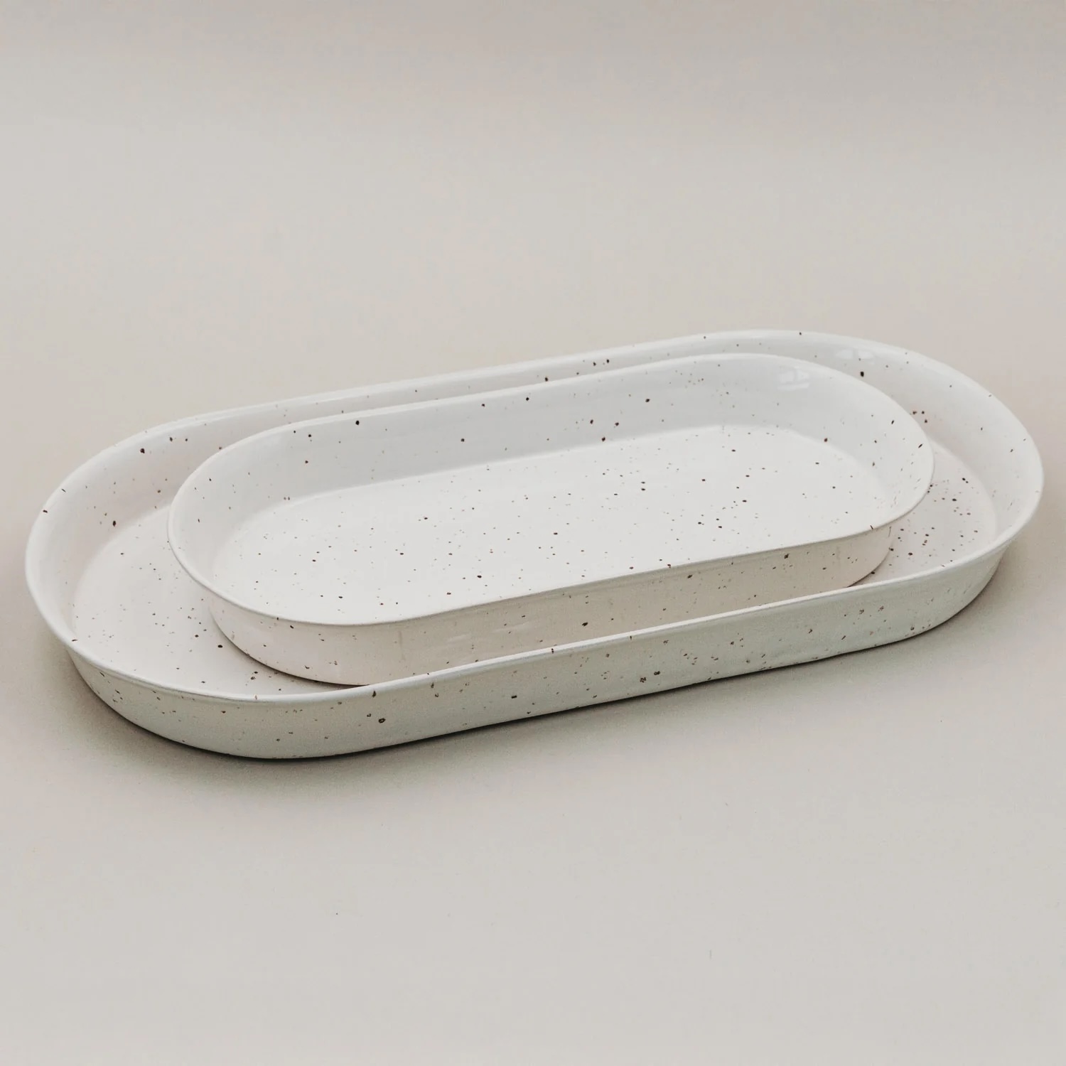 Mit ihrer natürlichen Form, dem dezenten Sprenkel-Look und dem schlichten Design fügt sie sich harmonisch in jede Tischdekoration ein. Wir sind schon ganz gespannt, wie du die Servierschale Calma in deinem Zuhause zum Einsatz bringst!