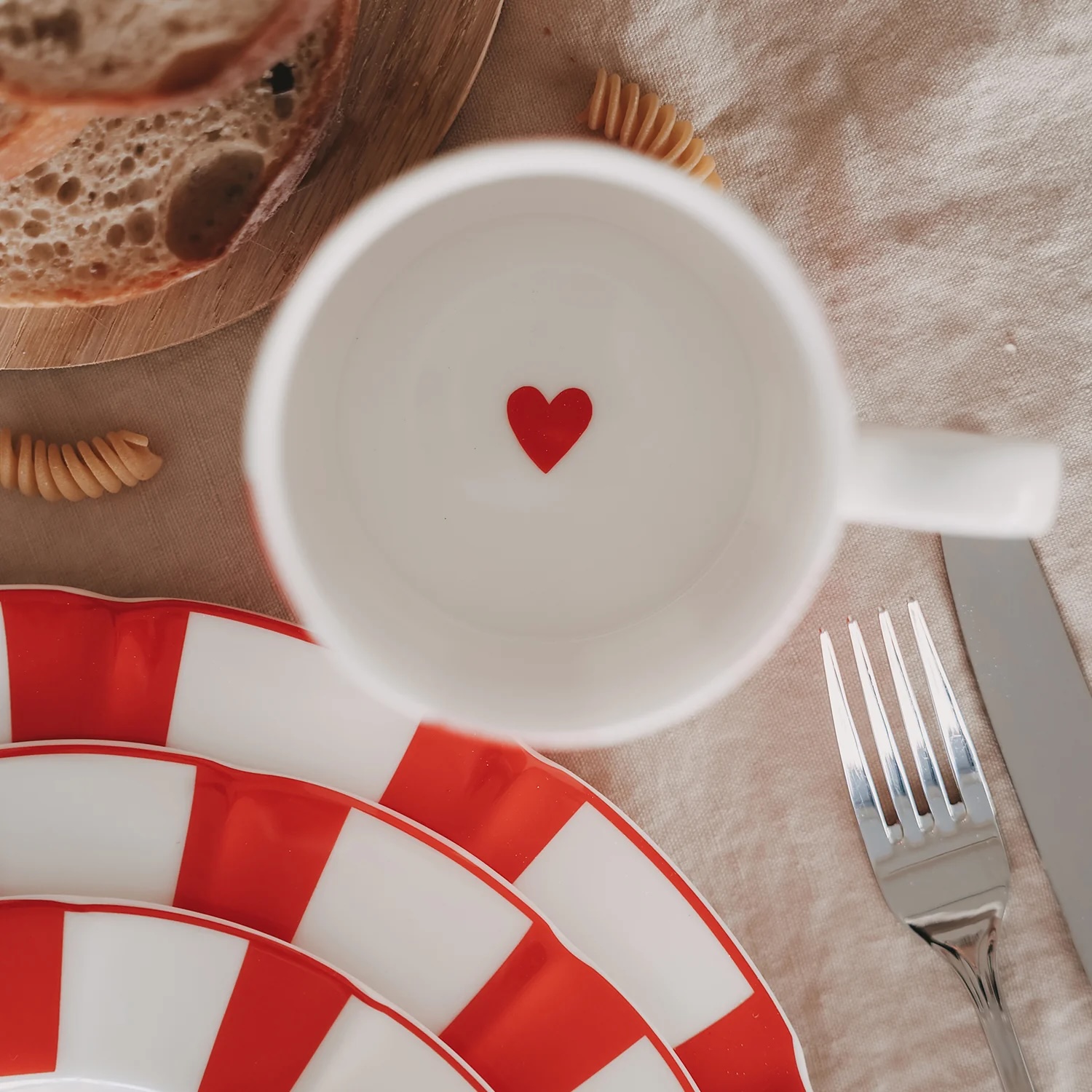 Die kräftigen Streifen setzen einen fröhlichen Akzent, während das kleine Herz im Inneren für ein liebevolles Detail sorgt, das dich bei jedem Schluck begleitet. Gefertigt aus hochwertigem Fine Bone Material überzeugt die Tasse durch ihre feine Verarbeitung, ihre Langlebigkeit und ihre Alltagstauglichkeit. Natürlich ist sie spülmaschinenfest und mikrowellengeeignet.