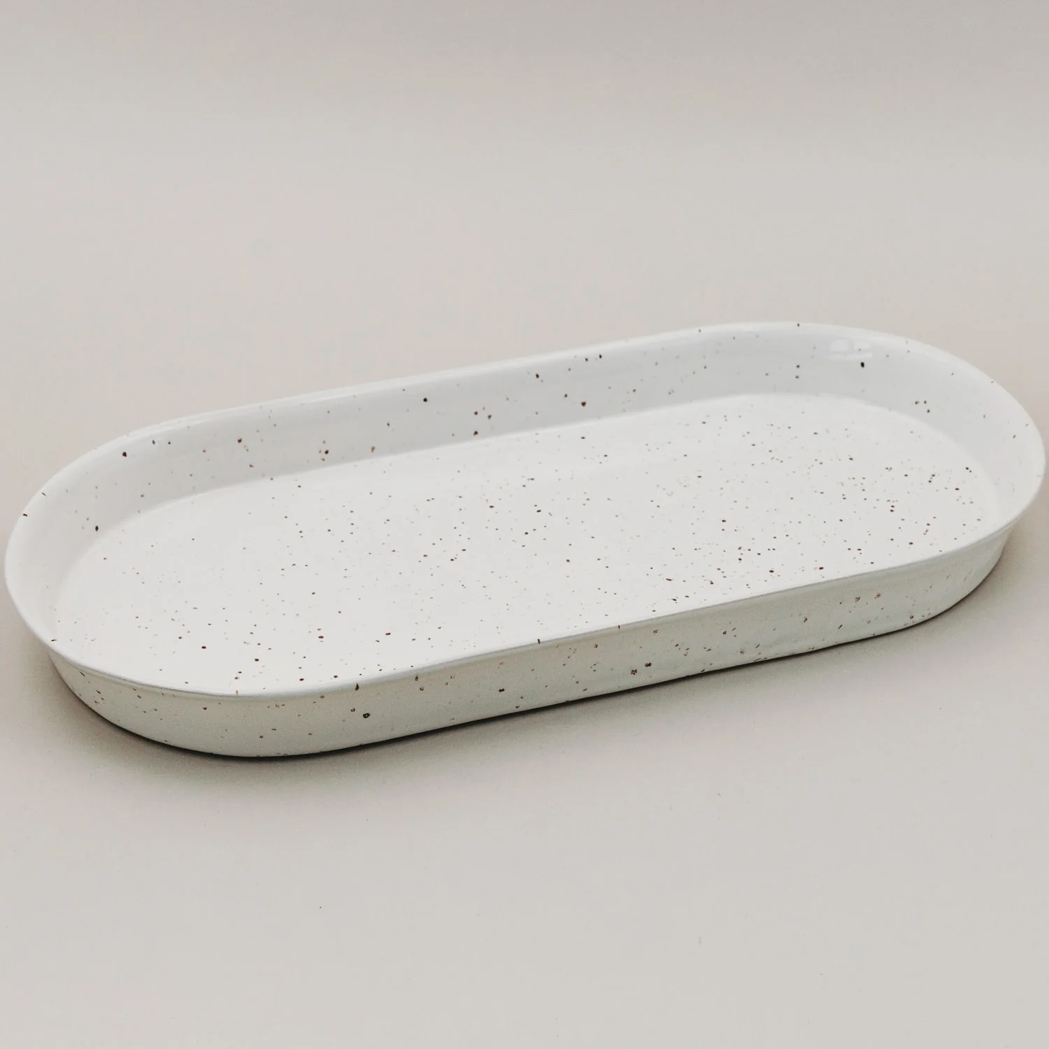 Mit ihrer natürlichen Form, dem dezenten Sprenkel-Look und dem schlichten Design fügt sie sich harmonisch in jede Tischdekoration ein. Wir sind schon ganz gespannt, wie du die Servierschale Calma in deinem Zuhause zum Einsatz bringst!
