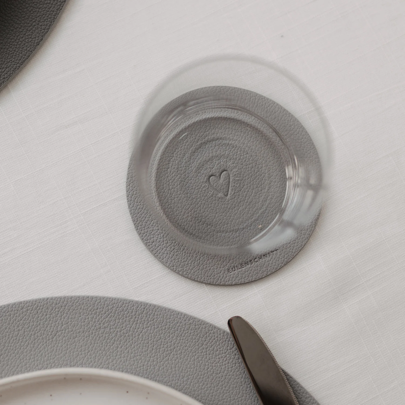 Ob unter Kaffeetasse, Wasserglas oder Weinkelch – die runden Untersetzer schützen empfindliche Oberflächen, sind rutschfest, formstabil und dank ihrer glatten Oberfläche ganz einfach abwischbar. Damit eignen sie sich sowohl für den täglichen Gebrauch als auch für besondere Anlässe.