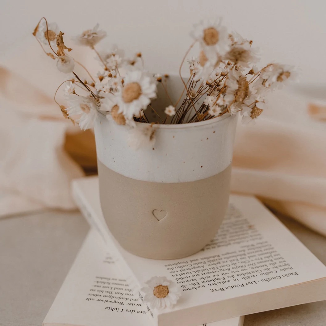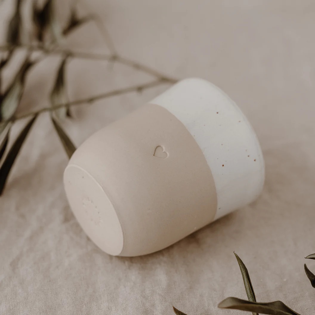 Eulenschnitt hat sehr viel Herzblut in eine neue Kollektion gesteckt, die von der Form, dem Ton, dem Glazing, sowie dem Design von uns entwickelt wurde. Eine kleine Töpferei aus Portugal produziert diese wundervollen Becher in liebevoller Handarbeit & ist ein großartiger neuer Begleiter auf unserem kreativen Weg. Unsere Becher lassen die Herzen höher schlagen, die die Individualität von Ton & Glasur lieben, denn jeder einzelne Becher hat seinen ganz eigenen Touch. Da alle Becher mit der Hand gefertigt, gebrannt, geprägt, abgeschliffen, geglazt & nochmal gebrannt werden, gibt es Unterschiede in der Drucktiefe, in der Höhe sowie der Geradlinigkeit. Das minimalistische Design und die natürlichen Farbnuancen werden von einer wunderschönen Blindprägung "Herz" abgerundet. Wir sind verliebt & voller purer Freude & können es kaum abwarten unsere neue Kollektion in Euren Händen zu sehen!
