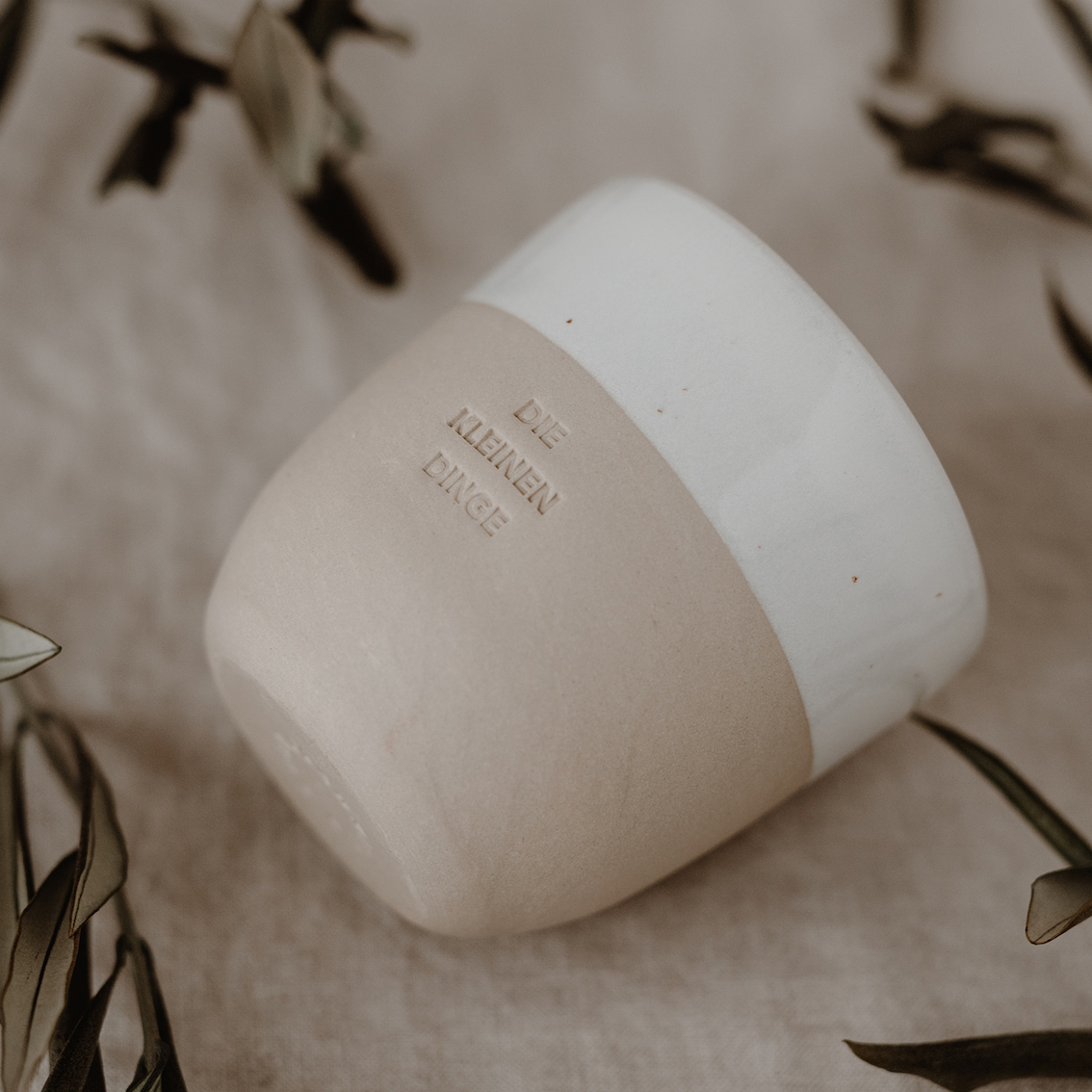 Wir haben sehr viel Herzblut in eine neue Kollektion gesteckt, die von der Form, dem Ton, dem Glazing, sowie dem Design von uns entwickelt wurde. Eine kleine Töpferei aus Portugal produziert diese wundervollen Becher in liebevoller Handarbeit & ist ein großartiger neuer Begleiter auf unserem kreativen Weg. Unsere Becher lassen die Herzen höher schlagen, die die Individualität von Ton & Glasur lieben, denn jeder einzelne Becher hat seinen ganz eigenen Touch. Da alle Becher mit der Hand gefertigt, gebrannt, geprägt, abgeschliffen, geglazt & nochmal gebrannt werden, gibt es Unterschiede in der Drucktiefe, in der Höhe sowie der Geradlinigkeit. Das minimalistische Design und die natürlichen Farbnuancen werden von einer wunderschönen Blindprägung “Kleine Dinge” abgerundet. Wir sind verliebt & voller purer Freude & können es kaum abwarten unsere neue Kollektion in Euren Händen zu sehen!