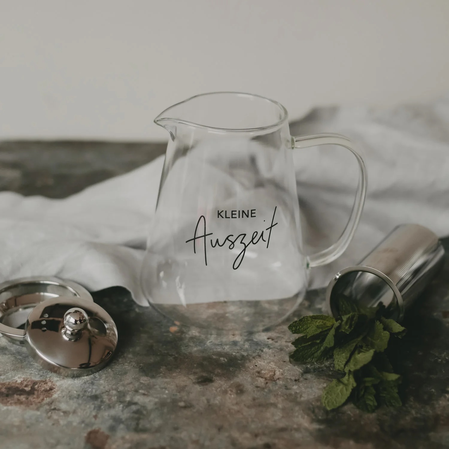 Entdecke den Zauber eines perfekt gebrühten Tees mit unserer eleganten Teekanne kleine Auszeit. Diese Teekanne ist nicht nur ein optisches Highlight, sondern auch ein praktisches Accessoire für alle Tee-Liebhaber. Sie passt wunderbar zu unseren doppelwandigen Gläsern und bildet so ein harmonisches Set für deine Teezeremonie.
