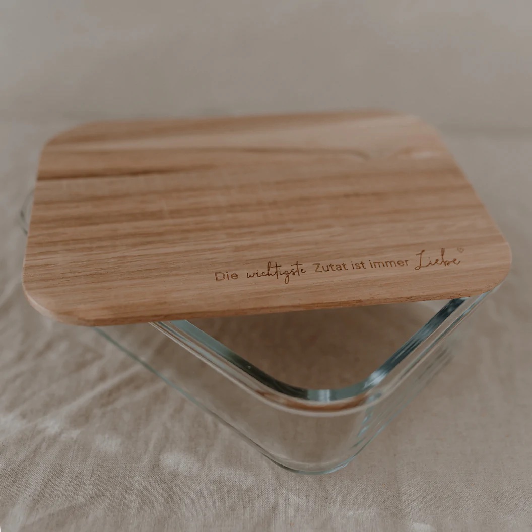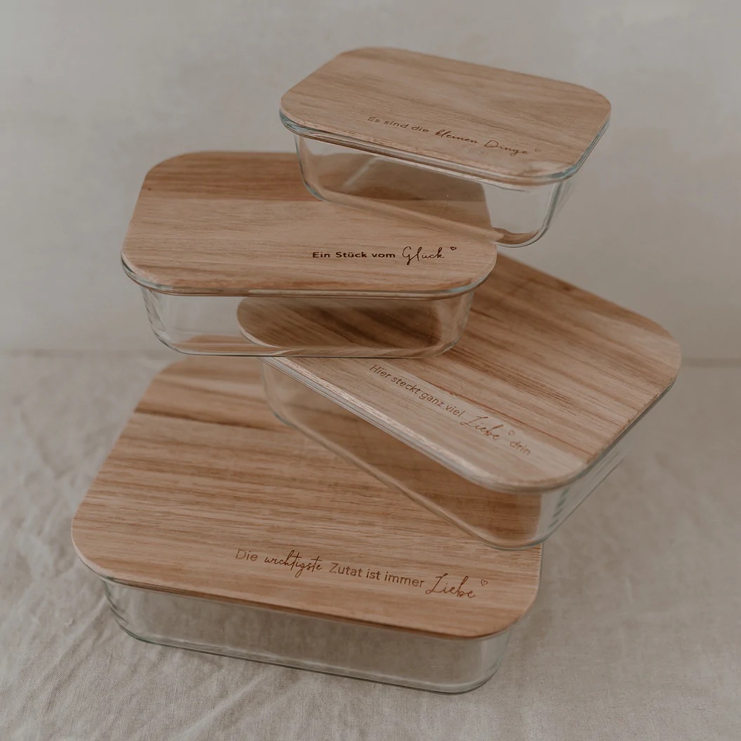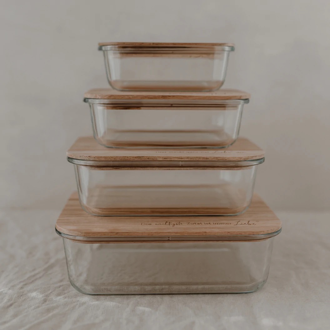 Wir können nicht glauben, wie schön man seine Vorräte aufbewahren kann mit unseren Vorratsbehältern aus Glas. Alle Gläser bestehen aus hochwertigem und strapazierfähigem Borosilikatglas. Sie werden mit einem Akazienholz Deckel geliefert, der ein wundervolles die wichtigste Zutat ist immer Liebe graviert hat. Borosilikatglas ist ein sehr robustes Material, das spülmaschinenfest und zu 100% recyclebar ist. Unsere Deckel werden aus unbehandeltem Akazienholz gefertigt, sodass jeder Deckel ein Unikat ist und einzigartig in seiner Struktur. Ein Silikonring zum luftdichtem Verschließen ist natürlich auch mit dabei.