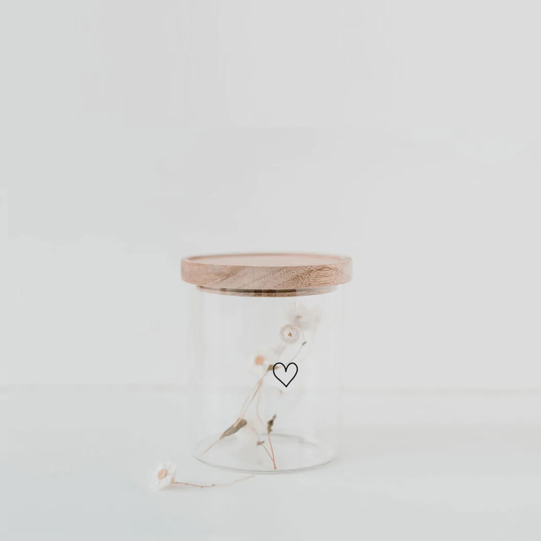 Wir können nicht glauben, wie schön man seine Vorräte aufbewahren kann mit unseren Vorratsgläser aus Glas. Das Glas besteht aus hochwertigem und strapazierfähigem Borosilikatglas und ist mit einem weißem Druck veredelt. Der Deckel ist aus Akazienholz, mit dem Logo und Motto “Konfetti für die Seele“. Borosilikatglas ist ein sehr robustes Material, das spülmaschinenfest und zu 100% recyclebar ist. Die Deckel werden aus unbehandeltem Akazienholz gefertigt, sodass jeder Deckel ein Unikat ist und einzigartig in seiner Struktur. Ein Silikonring zum luftdichten Verschließen ist natürlich auch mit dabei.