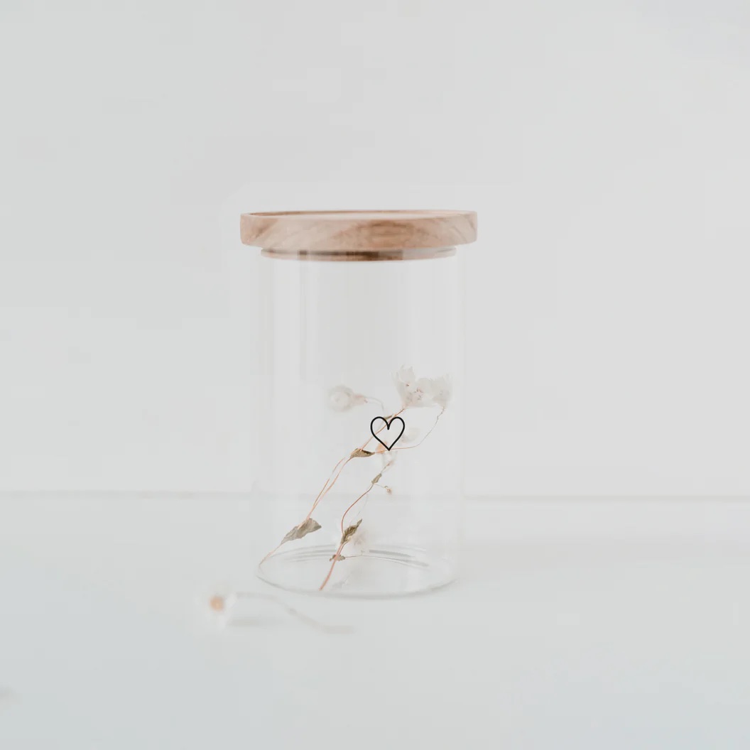 Entdecke unser wunderschönes und praktisches Vorratsglas "Herz" 19 cm aus Borosilikatglas mit Akazienholz Deckel.