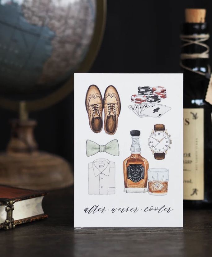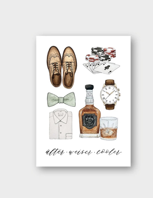 Dieses Motiv wurde liebevoll entworfen und mit Aquarellfarben gemalt. Die Schrift wurde mit Tusche und Feder kalligrafiert.