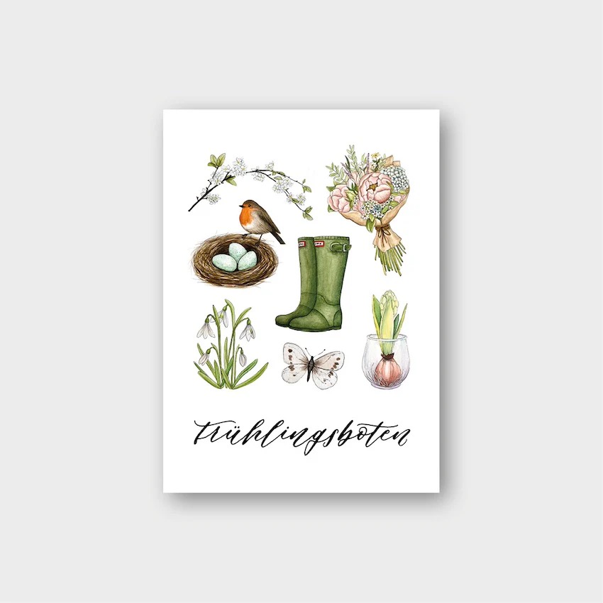 Anschließend wurde das Motiv digitalisiert und auf 300g schweren, eierschalenfarbenen Naturkarton gedruckt. Die Rückseite lässt viel Platz für handgeschriebene Grüße.