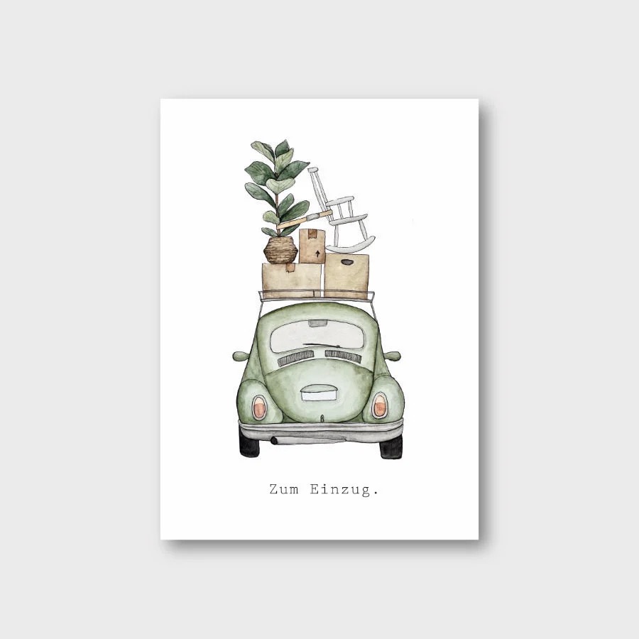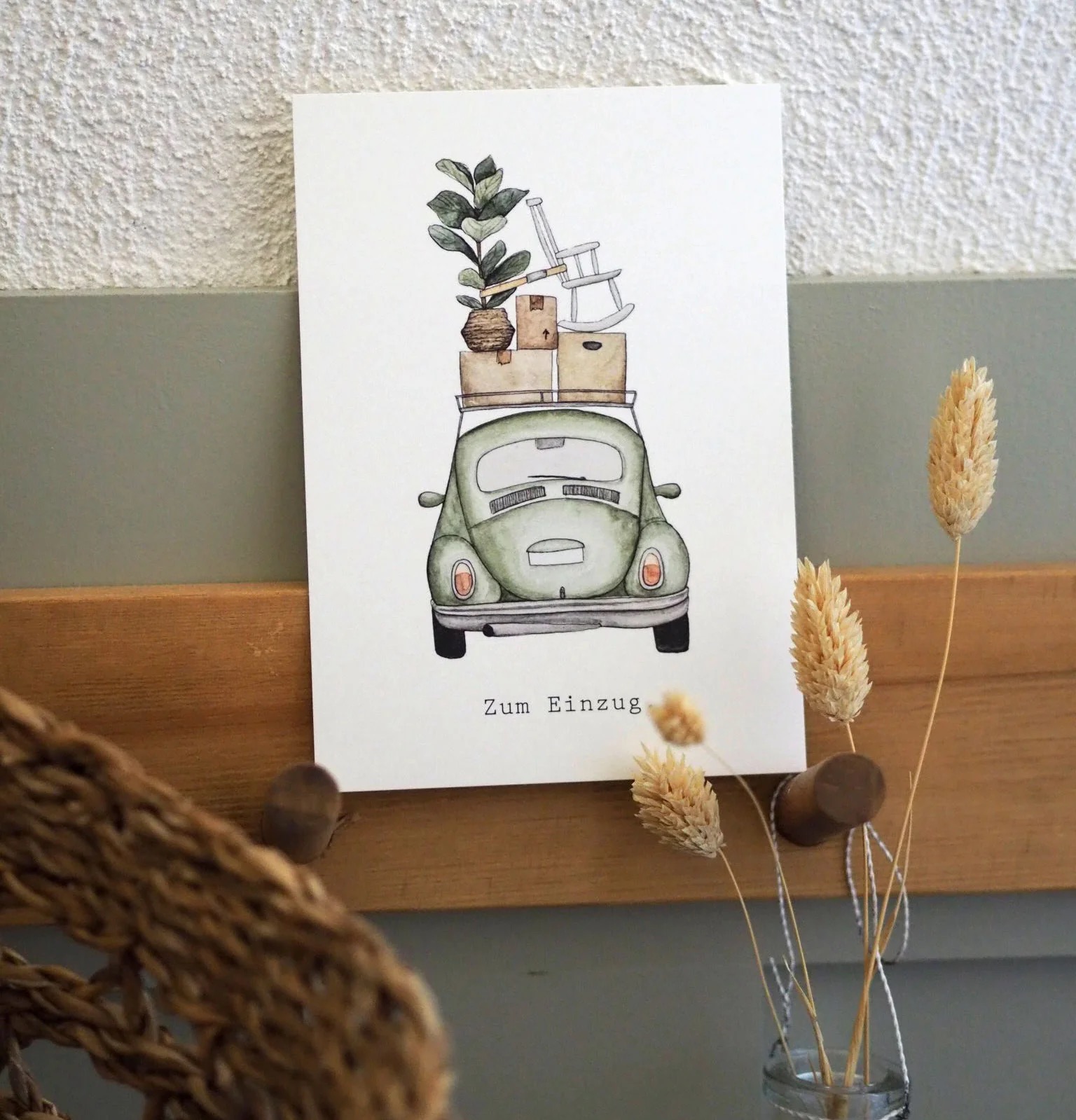 Dieses Motiv wurde liebevoll entworfen und mit Aquarellfarben gemalt. Die Schrift wurde mit Tusche und Feder kalligrafiert.