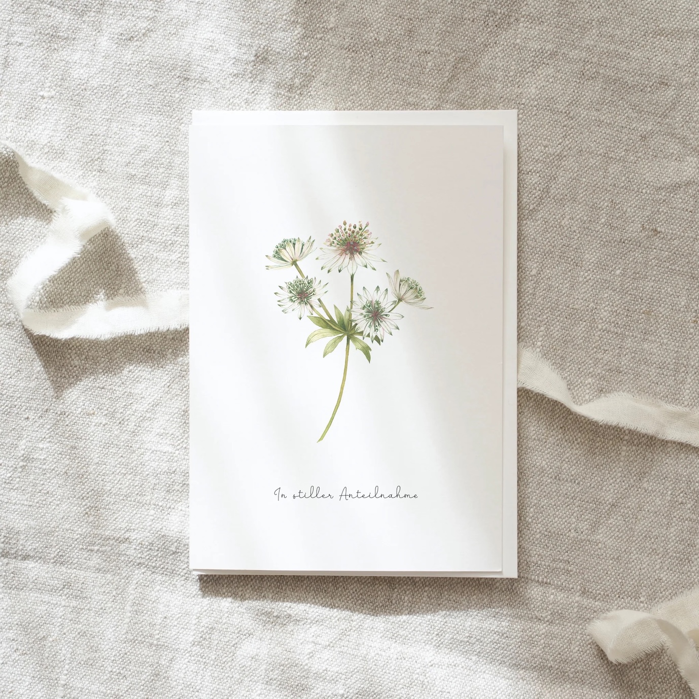 Das Format der Klappkarte ist 11,0 x 15,5 cm. Die Karte wird inkl. passendem cremefarbenem Briefumschlag verschickt. Gedruckt wird auf ein cremefarbenes Naturpapier (300g).