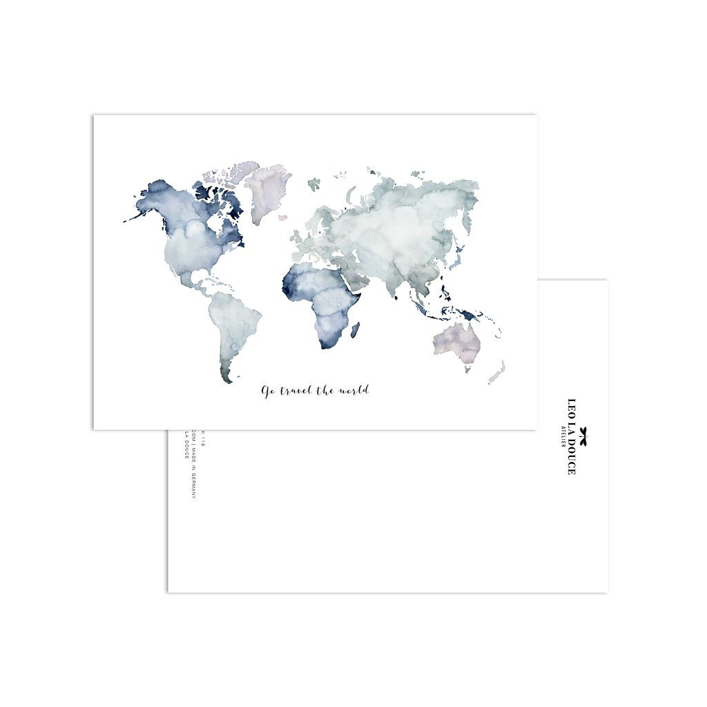 WELTKARTE BLAU GO TRAVEL WORLD