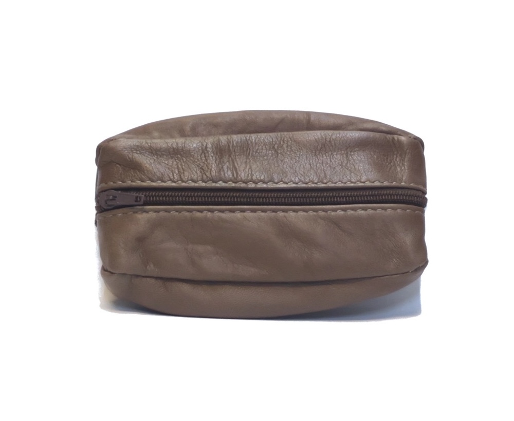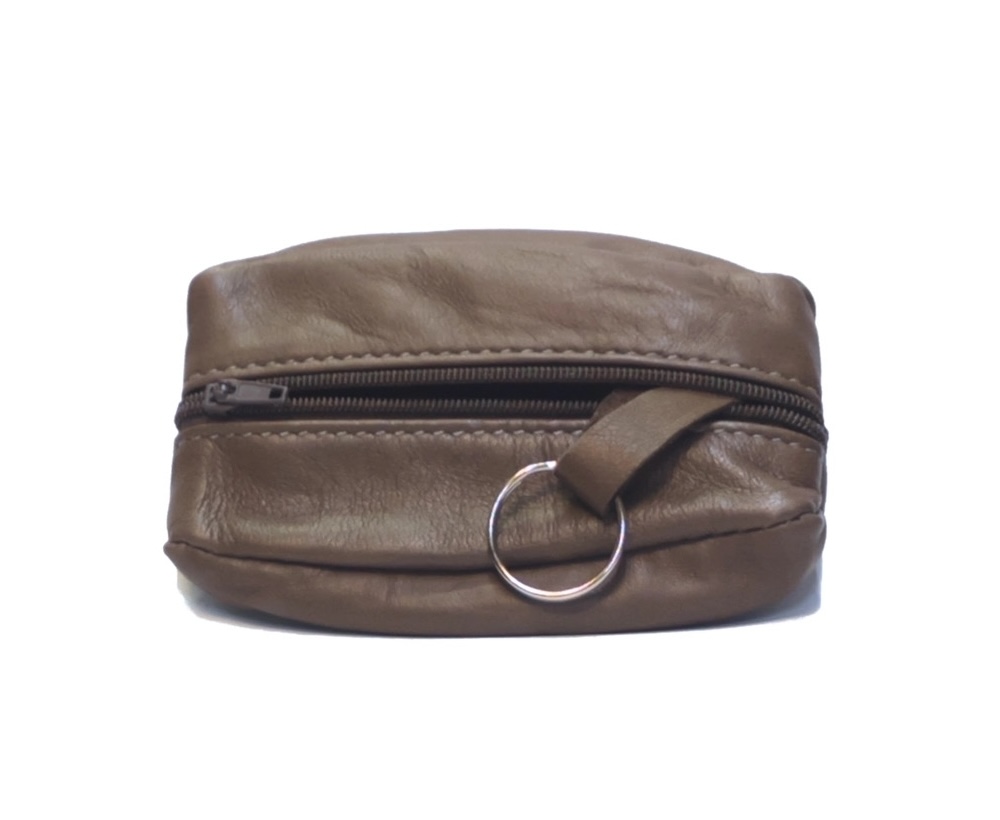 Schlüssel.Münzetui in Form einer "Kaffeebohne" aus Leder.